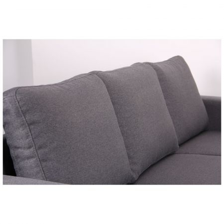 Дивани і крісла укомплектовані м’якими подушками, які при необхідності можна зняти. Конструкція передбачає наявність широких м’яких підлокітників, м’якого сидіння і зручної спинки. Матеріал наповнення – пінополіуретан, оптимально розподіляє навантаження на конструкцію. Будь-який предмет меблів з серії має зручну висоту, що дозволяє легко сідати і вставати. Тканинна оббивка – приємна, м’яка на дотик не вибаглива в догляді, легко чиститься, відрізняється підвищеною зносостійкістю і міцністю.