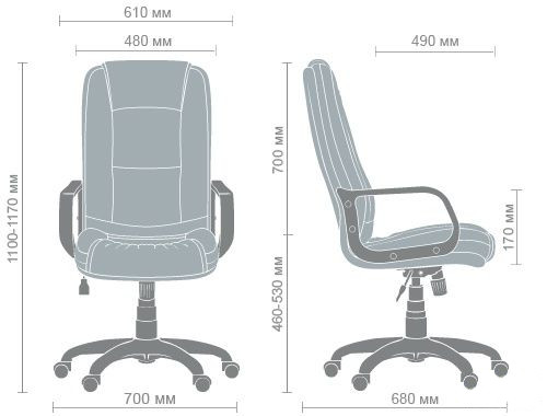 Висота підлокітників від сидіння: 170 мм