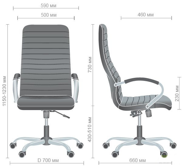 Висота підлокітників від сидіння: 230 мм