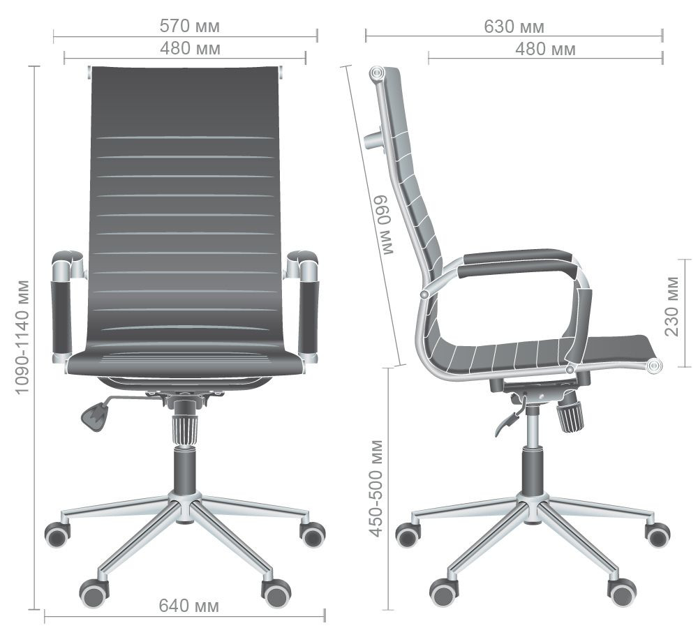 Висота підлокітників від сидіння: 230 мм