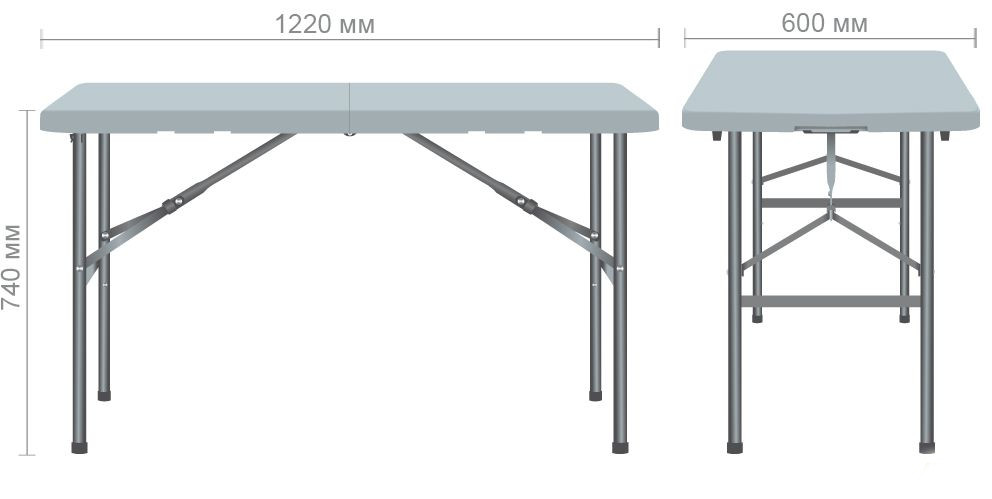 Складна конструкція столу дозволяє компактно зберігати його в приміщенні або багажнику автомобіля. Завдяки продуманій системі складання, стіл займає мінімум місця і легко транспортується до місця призначення. Невелика вага виробу спрощує процес переміщення та встановлення.