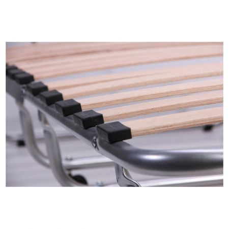 Зручна розкладачка з анатомічним матрацом дозволить організувати місце відпочинку на свіжому повітрі, в саду або на дачі. Також можна використовувати як домашні меблі. Матрац виготовлений із екологічно чистих, гіпоалергенних матеріалів. Пружні високоякісні букові ламелі разом із безпружинним матрацом з пінополіуретану є повноцінною заміною ліжка з анатомічним матрацом. На ніжках розкладачки є ролики для зручності переміщення.
